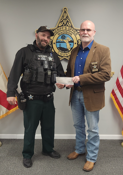 For Madison County Sheriff’s Office (MCSO) Deputy Ryan Paiva being a safe driver has paid off, literally. Because of his safe driving record, Paiva was entered into the Florida Sheriff’s Risk Management Fund Safe Driver Challenge. As a result, he was awarded a $1,000 cash prize.