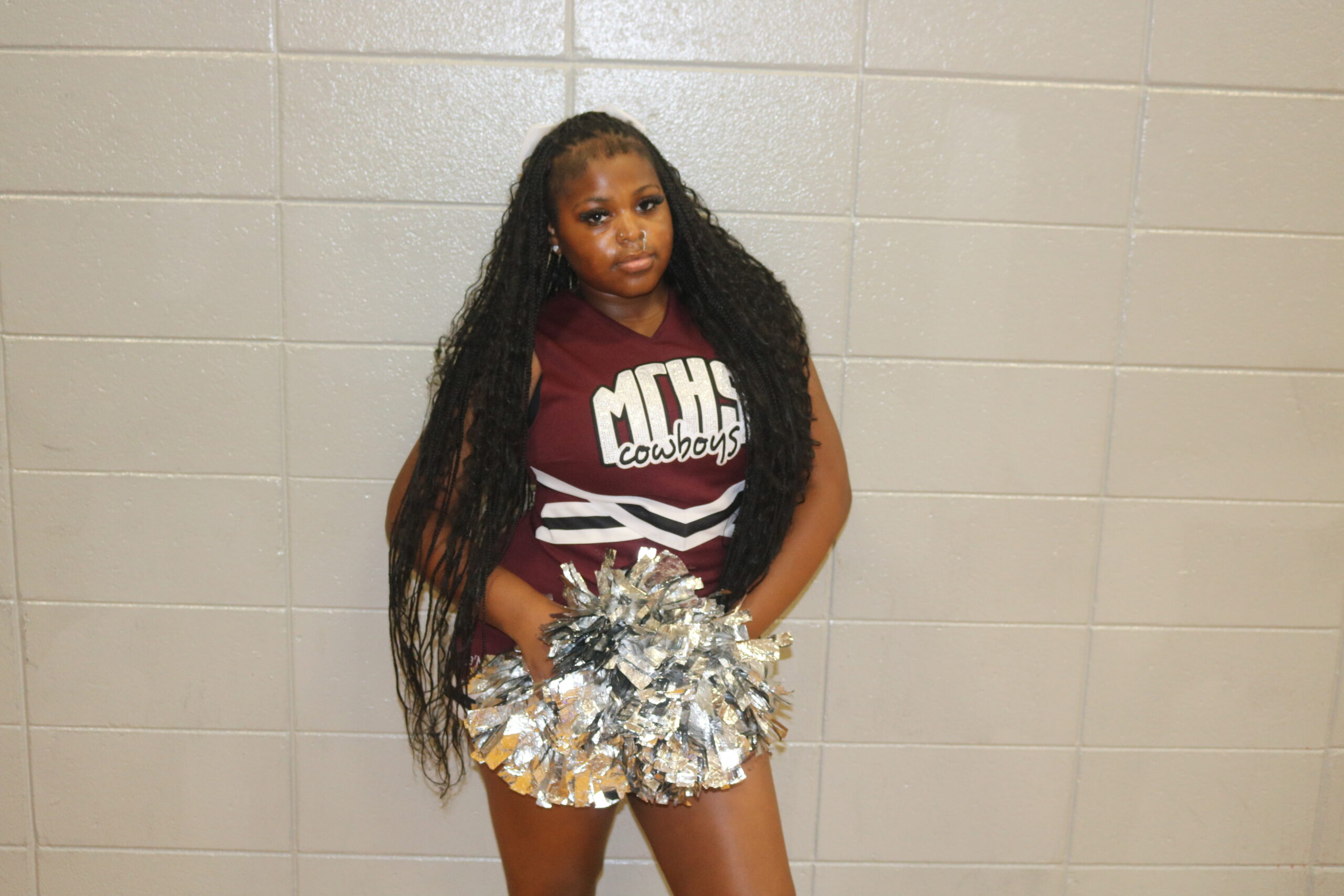 Ja’Niecia Davis is the 16-year-old daughter of Clarissa Robinson and has been a cheerleader for three years. Her most memorable experience as a Cowboy cheerleader so far has been the Fellowship of Christian Athletes camp. She considers her coaches and how deeply she and her fellow cheerleaders “truly care for each other” to be what she enjoys most about being a cheerleader. [Rick Patrick/Greene Publishing, Inc.]