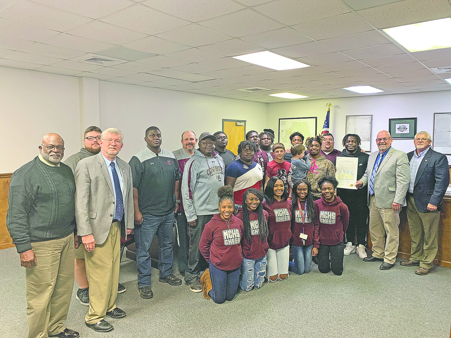 During the Madison County Board of County Commissioners (BOCC) regular session on Wednesday, Jan. 22, the 2019 Class 1A State Champions, the Madison County Cowboys, were honored with a proclamation for their feat of winning three consecutive state championships.