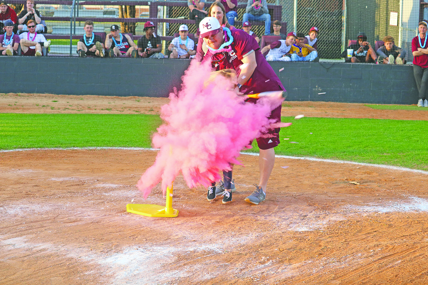 Despite the cancelled varsity game, a festive mood continued throughout the ball park as a special "gender reveal" was planned for Head Baseball Coach Jason Fletcher and his wife Leslie, who are expecting the couple's second child. Fans and players alike chose to represent either "Team Pink" or "Team Blue" as everyone eagerly anticipated the revelation. When the time came, Coach Fletcher and his daughter Madi hit a special baseball that exploded in pink powder upon impact, signifying another daughter for the Fletcher family.