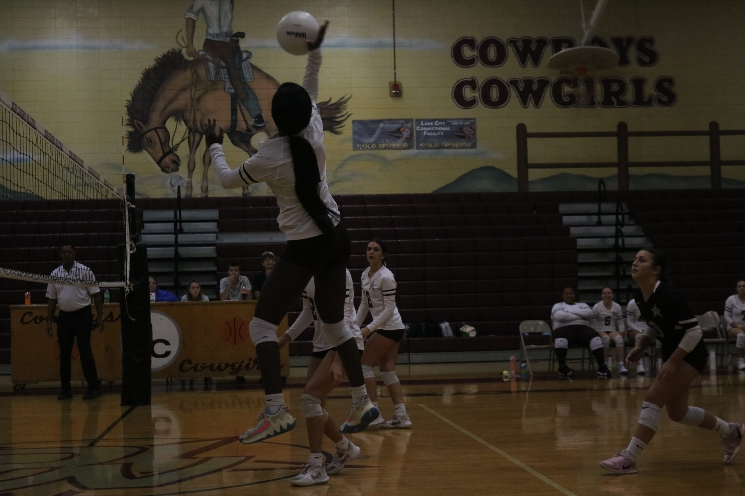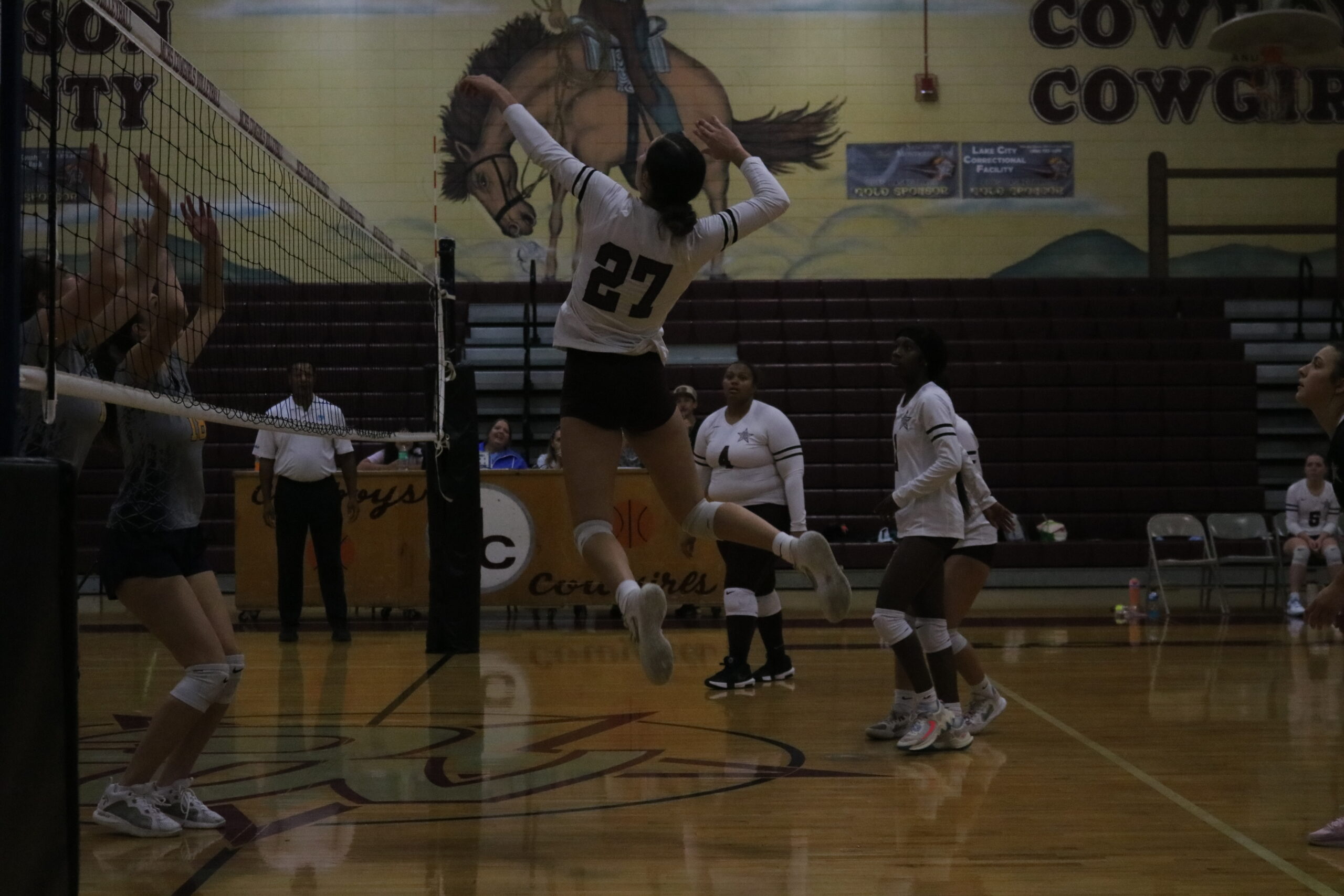 In the junior varsity match, the Cowgirls were able to take the match in two straight sets, with scores of 25-11 and 25-14. The varsity match was much more competitive . After dropping the first set, 24-26, the Cowgirls were able to rebound and win the second set, 25-19. In the third set, the Cowgirls continued to press their advantage and won the set with a 25-17 score. The fourth set was very competitive as seemingly every point was hotly contested. The Cowgirls managed to hold the Chargers at-bay and win the set, 25-21. The varsity Cowgirls won the match, 3-1.
