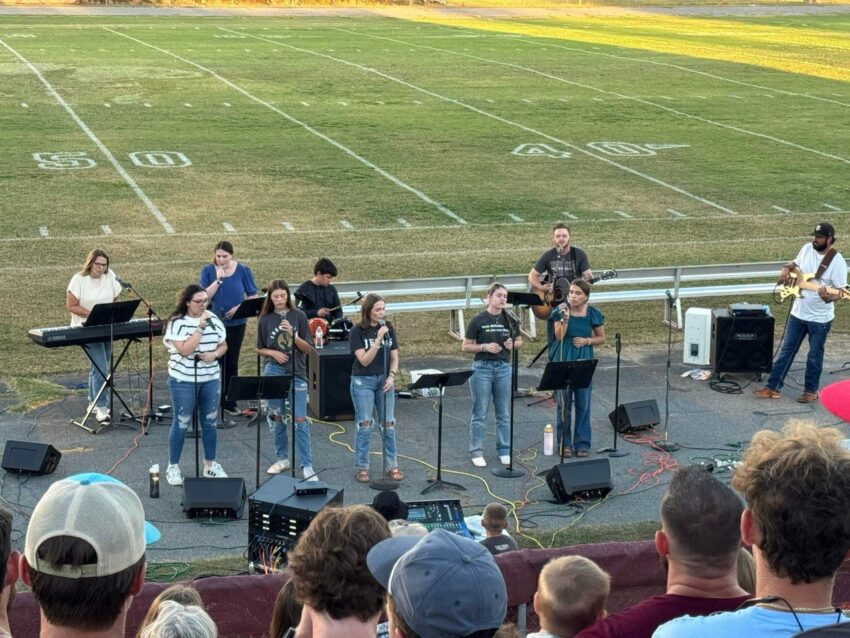 The Fellowship of Christian Athletes (FCA) held their annual Fields of Faith event at Boot Hill Stadium on Wednesday, Sept. 24. Members of Madison First Baptist Church’s youth band led the audience in worship before students from Madison County High School (MCHS), Madison Creative Arts Academy and James Madison Preparatory High School shared favorite Bible verses.