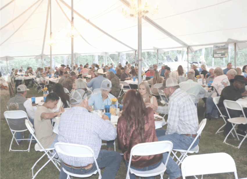 On Saturday, Oct. 11, dozens of supporters gathered to enjoy some great food and fun fellowship at King’s Mill Cabin, in Madison, for the Annual Future Farmers of America (FFA) Alumni Beef Feast. The evening featured a meal consisting of a generous steak, prepared by Deep South BBQ, loaded mashed potatoes, a salad and banana pudding. In addition, there were several valuable items to be raffled off, as well as a silent auction and a live auction, featuri