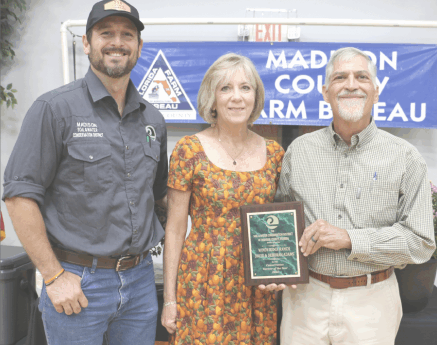 During the 80th Annual Farm Bureau Banquet on Tuesday, Sept. 16, David and Deborah Adams were awarded as the Conservation Farmers of the Year by the Madison Soil and Water Conservation District. David was a forester for many years before moving to Madison County from nearby Perry.