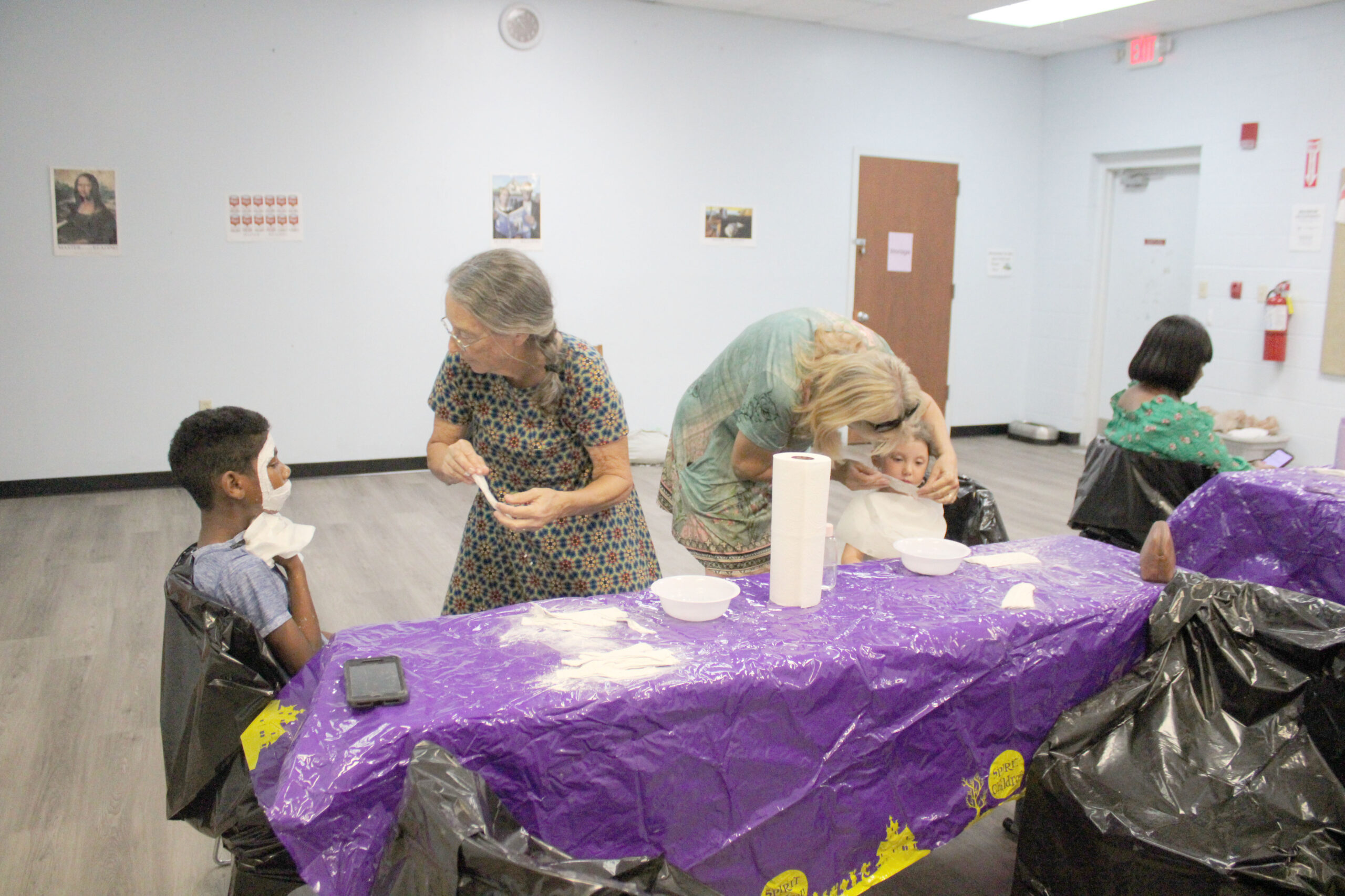 Stange first explained how the children would make their masks using plaster, baby oil and water. Then, she walked around helping parents/grandparents with making their children’s masks. After