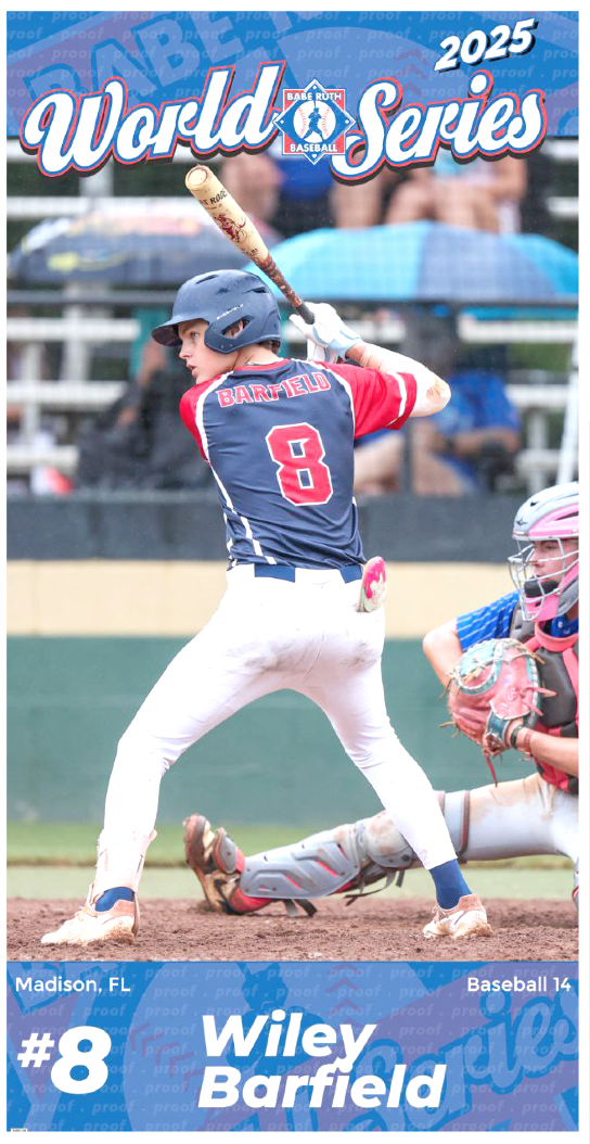 For Wiley Barfield, August of 2025 will be a month he will remember, possibly for the rest of his days. He is part of the Tallahassee/Leon 14U Babe Ruth All-Stars team playing in the Babe Ruth 14U World Series, being held in Hot Springs, Ark. Barfield is a rising 10th grade student at Aucilla Christian Academy (ACA), where he has played baseball for the ACA Warriors. This summer, he has played for the Tallahassee Babe Ruth team and was selected to play
