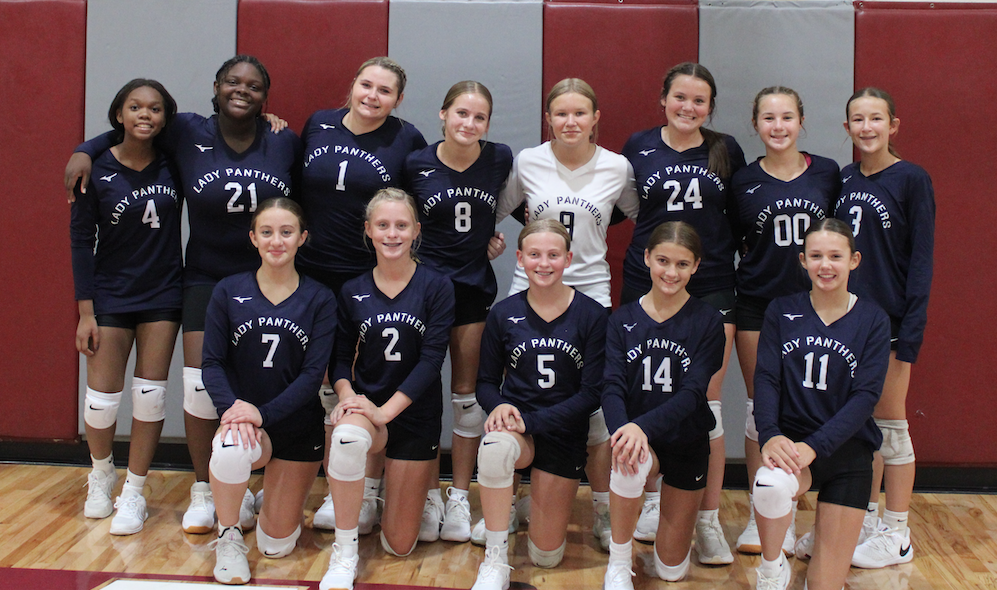 The Lady Panthers pose to strike their opponents. Pictured, from left to right, in the front row are: Lucy Abbott, Cheyenne Richardson, Ramsey Webb, Brooklyn Plain and Eleanor Paulk. Pictured, from left to right, in the back row are: Aliyah Fiffia, Saniyah Mitchell, Lexi Wetherington, Abby Page, Rilyn Selph, Lily Hanners, Ruby Albritton and Brooklyn Selph. [Leah Androski/Greene Publishing, Inc.]