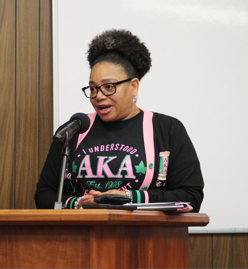 Tracy Mays, with the Nu Omega Omega chapter of the Alpha Kappa Alpha Sorority, Inc., was first up with an invitation to everyone to join them in the naming of the Public Works Building in honor of former City Manager Jerome Wyche, who lead the charge in getting the new facilit