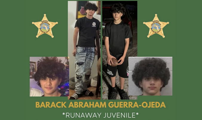 The Madison County Sheriff’s Office (MCSO) is still seeking a runaway juvenile who was last seen in the area of the Twin Oaks Youth Academy, in Greenville. Barack Abraham Guerra-Ojeda, 14, is a white male and was last seen wearing a blue sweatshirt, grey sweatpants over orange shorts and black slides. He is 5’6” tall and weighs approximately 130 pounds, with brown eyes and brown hair with a purple streak in the front portion of his hair. He was last seen at around 4:48 p.m., on Tuesday, March 24.