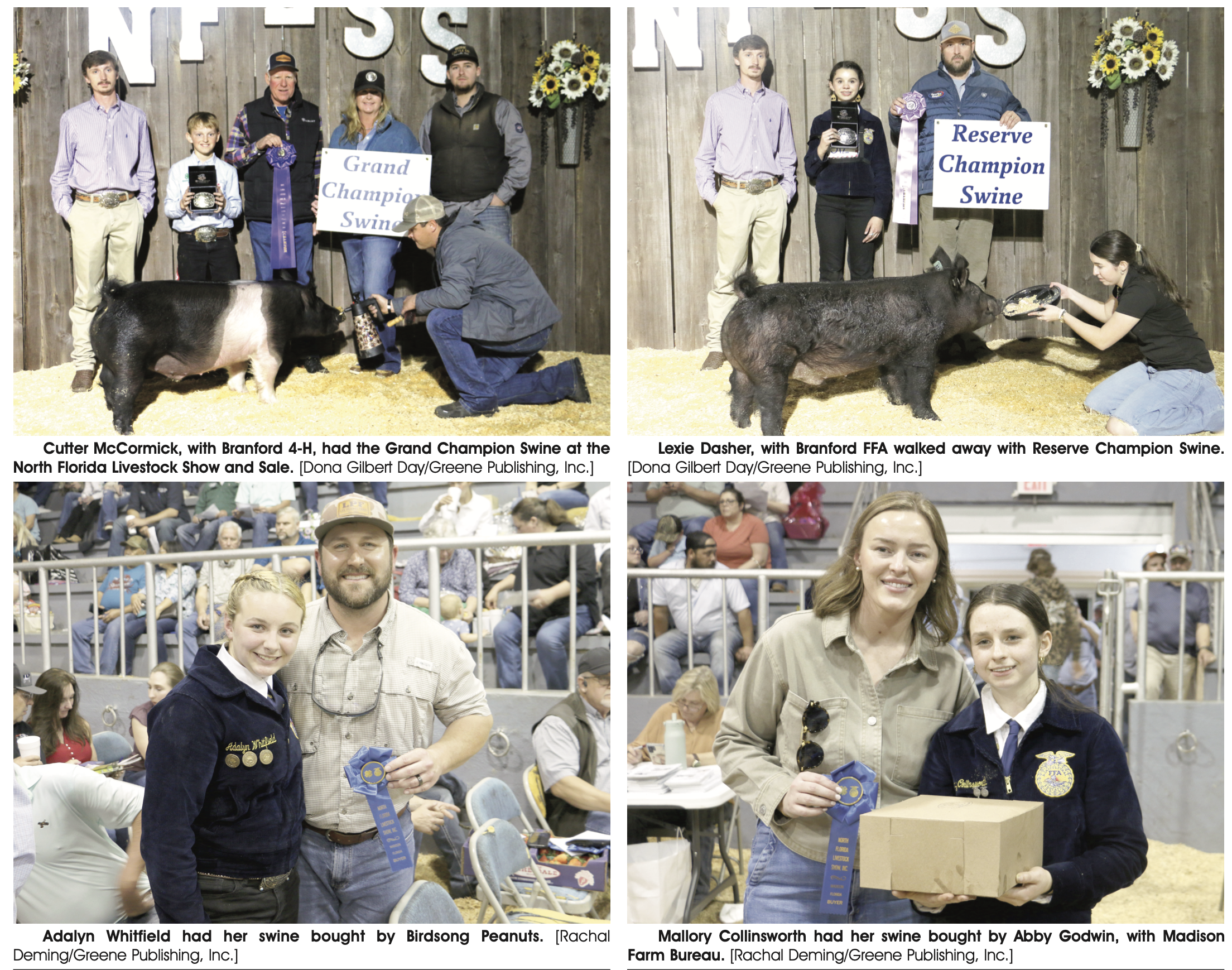 In the Swine Show, Cutter McCormick, with Branford 4-H, won Grand Champion, with Lexie Dasher, with Branford FFA, as Reserve Champion.