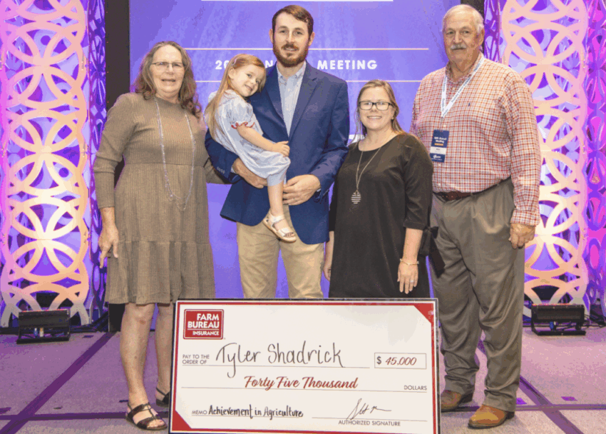 Tyler Shadrick, of Shadrick Farms in Madison County, has been named the 2025 Florida Farm Bureau Achievement in Agriculture award winner. His announcement came at Florida Farm Bureau’s 84th Annual State Meeting on Monday, Oct. 27, at the Daytona Hilton Oceanfront Beach Resort.
