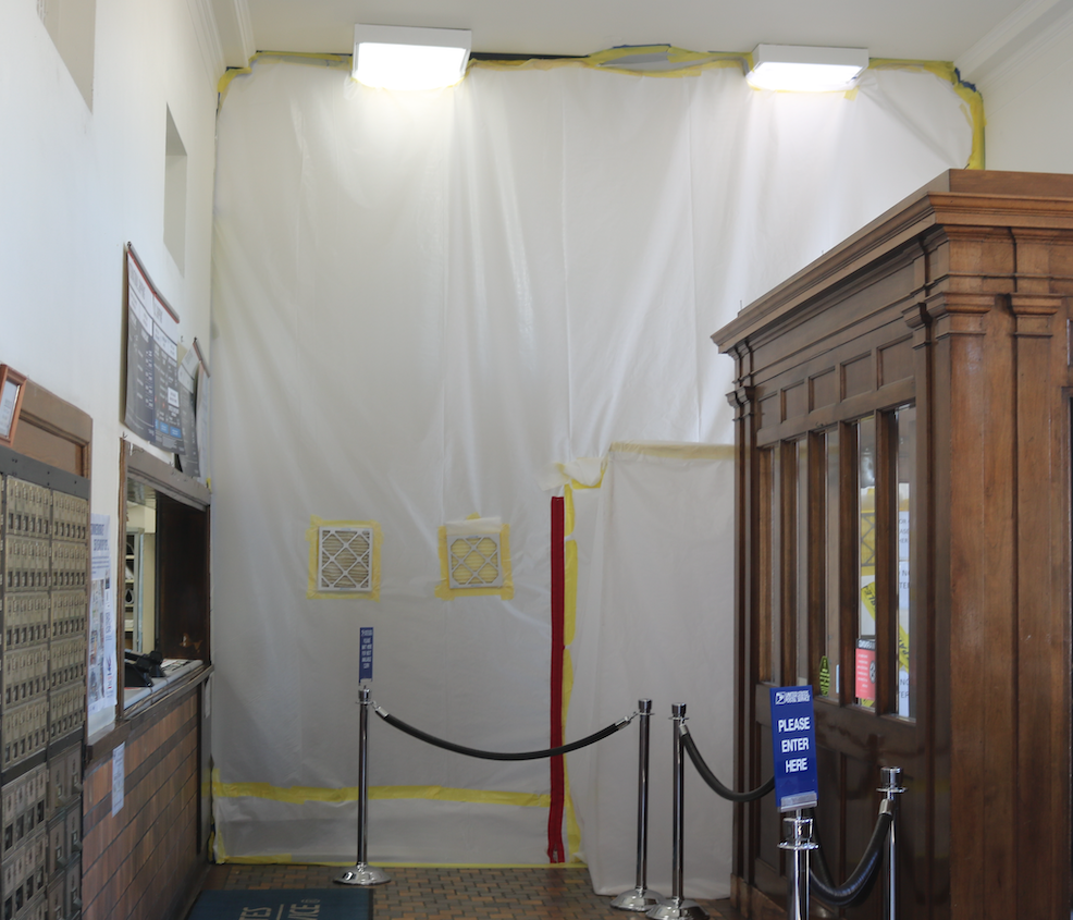Although Greene Publishing, Inc. inquired about the future of the paining and what was being done behind the barriers currently erected at the post office, no specific answers were provided.