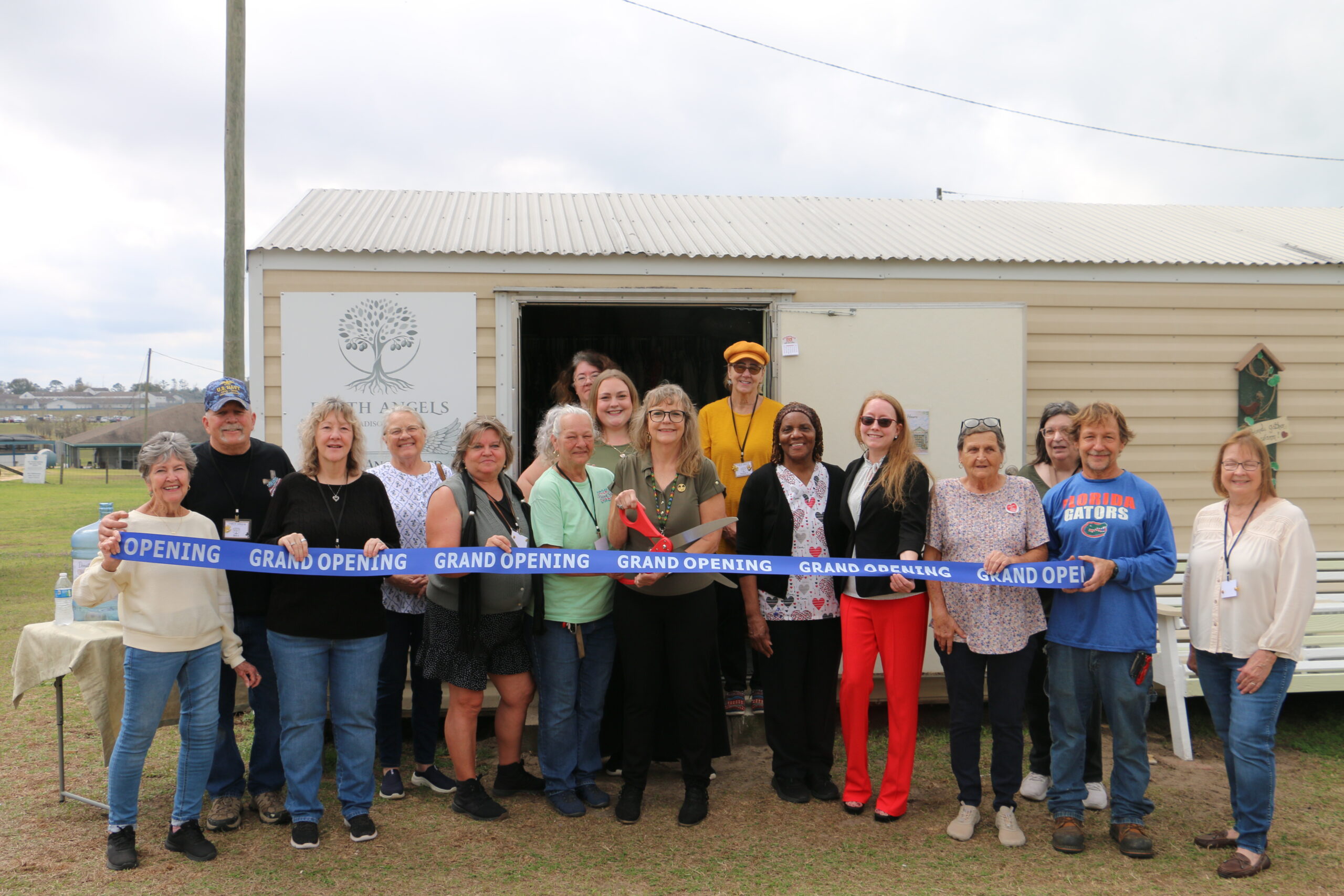 The grand opening of the Silver Angel Shed opened with a heartfelt group prayer, setting the tone for a celebration rooted in faith and community. Marlies Jones, founder and president of Earth Angels of Madison County, stepped forward to share the story behind the organization’s remarkable journey.